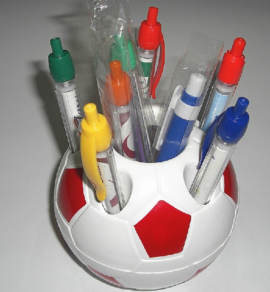 Football shape plastic pen holder for wholesale Fancy and high quality pen holder/container With your brand logo