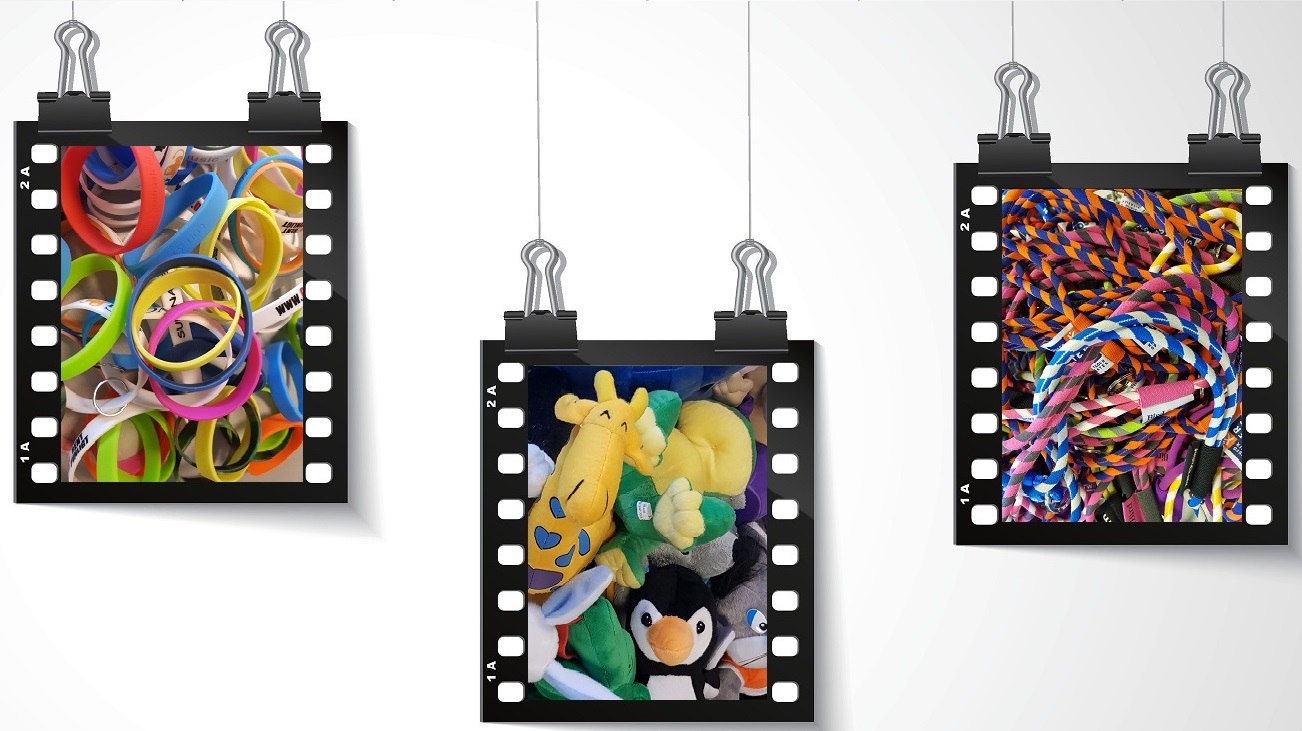 Giving away promotional products, some of our main selling items are lanyards, mobile phone gadgets, keychains, caddy coins, fleece items, touchscreen gloves, foldable (anti) bottles, inflatables, beanies, suitcase straps and kid’s stuff. Ofcourse this list varies, as only you, our esteemed customer, are responsible for the goods we sell. All our goods apply to requested European safety and environmental regulations. Giving away functional branded gifts can be a more effective promotional move than handing out simple business cards. Put your business card on a magnet, scarf or keychain. These are gifts you can give to your clients.