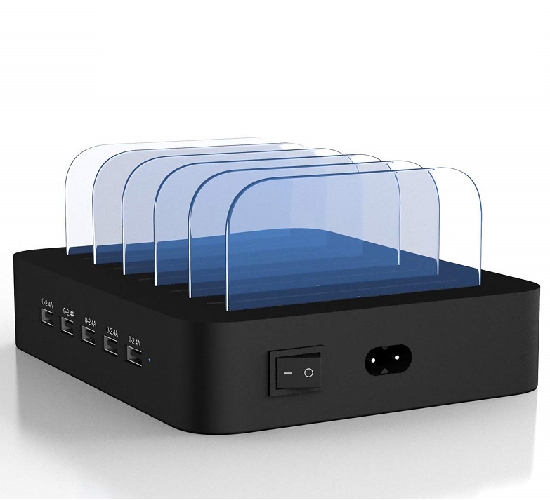 Charging station 5 port cell phone USB hub charger dock station-This cell phone charging station can charge up to 5 devices simultaneously, you can use it to charge all your electronic devices at home or in the office