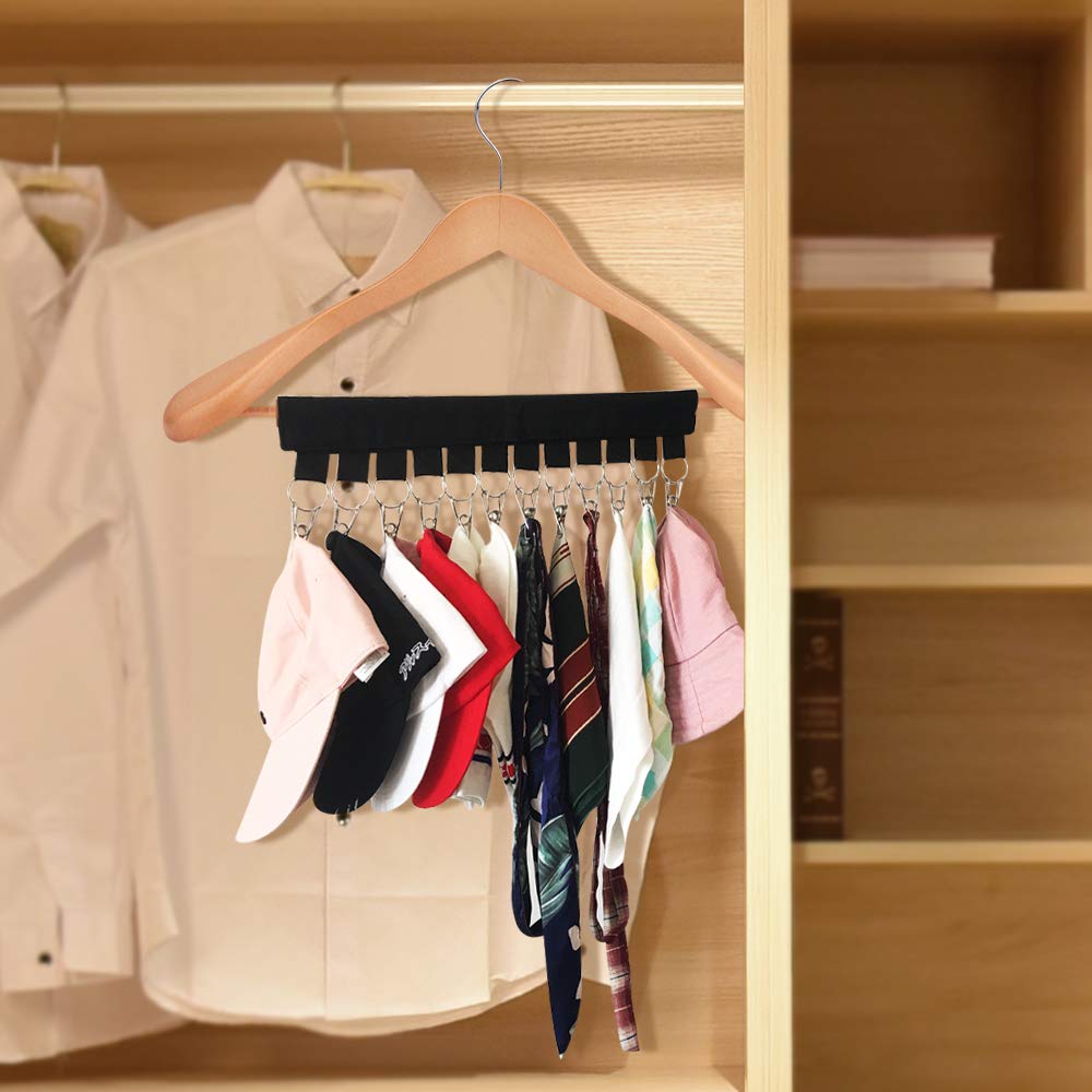 Hat Organizer for 10 baseball cap holder-Keep your caps clean-Wrap it on your ordinary cloth hanger, clip your hat on the stainless steel clips-Hangers can be folded thus it can fit in small pockets of travel bags and luggage, with a slim, compact profile-Perfect for travel