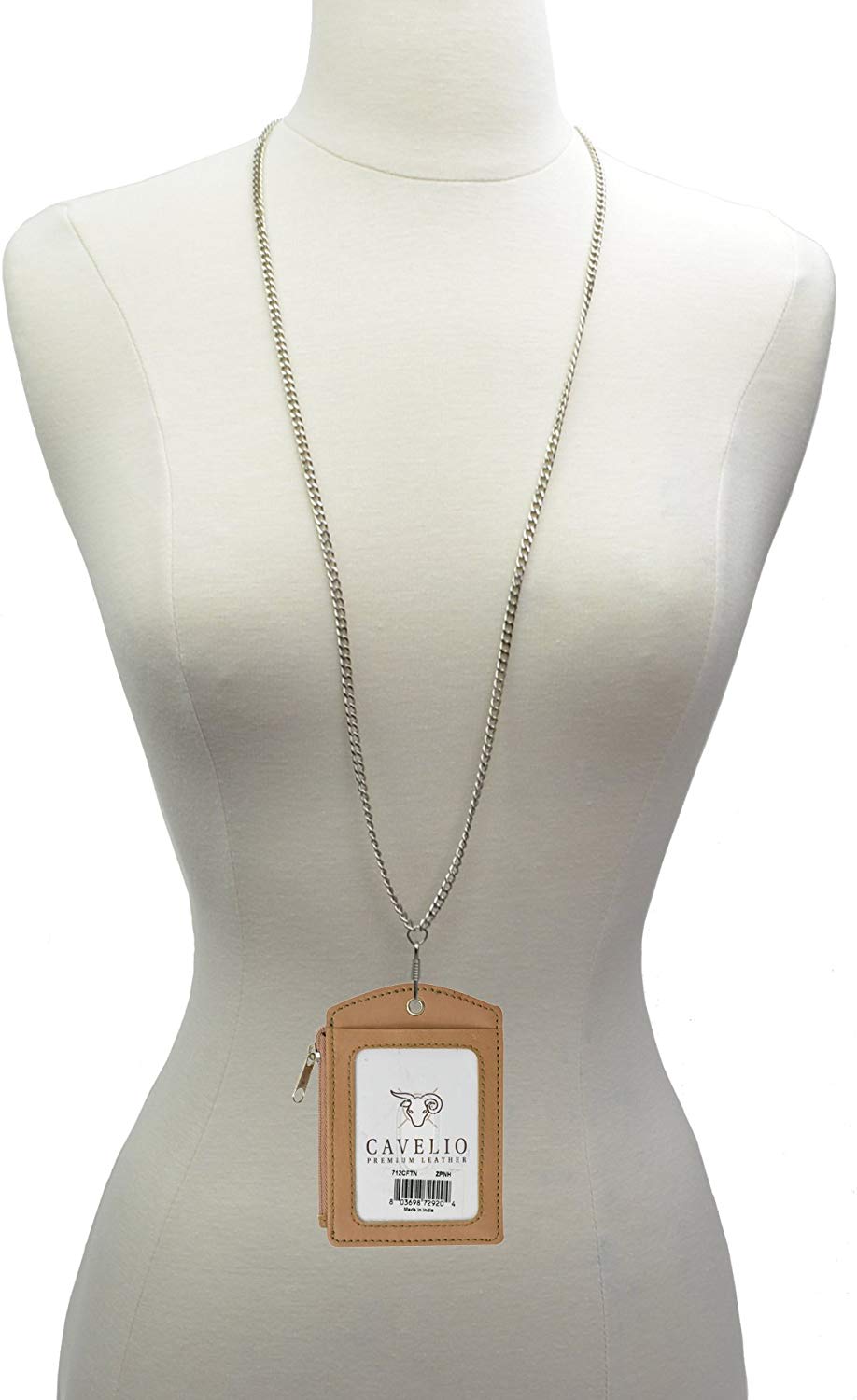 Genuine leather ID badge holder-Metal chain neck strap-1 ID window-1 zippered pocket-3 credit card slots in the back-With your brand logo