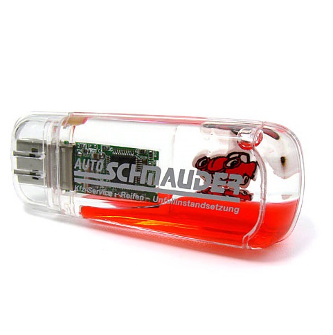 Liquid custom USB drive-This model is visually impressive-A translucent plastic drive that is filled with colored liquid