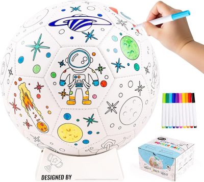 Design your own favorite football -In a PVC cover material- Including plastic pump, and 5 assorted colorful permanent markers – All in a giftbox