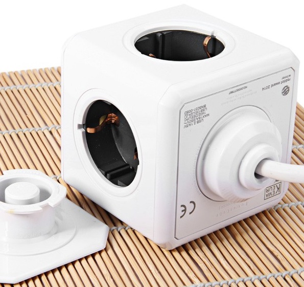 The socket cube has 4 sockets and 2 USB ports and a stable power cable with a length of 1.5 meters-You can place the socket cube on the supplied docking station or plug it for example into a wall outlet