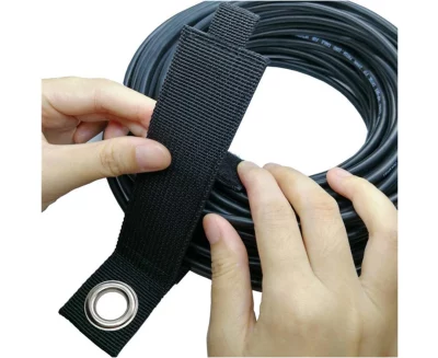 The durable material ensures high strength and stability-The eyelet allows the fixing or hanging of the cable bundle by a screw e.g. on a wall-The strap is also ideal for hanging heavy tools, such as a handsaw or drill, but also as a carrier on bags and backpacks.