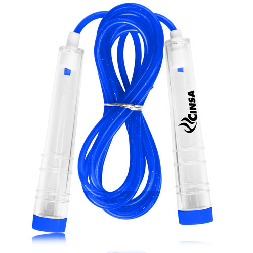 Translucent skipping rope for sports or fitness-Flexible plastic rope with adjustable length and translucent handle-Rope length 2.7 meters